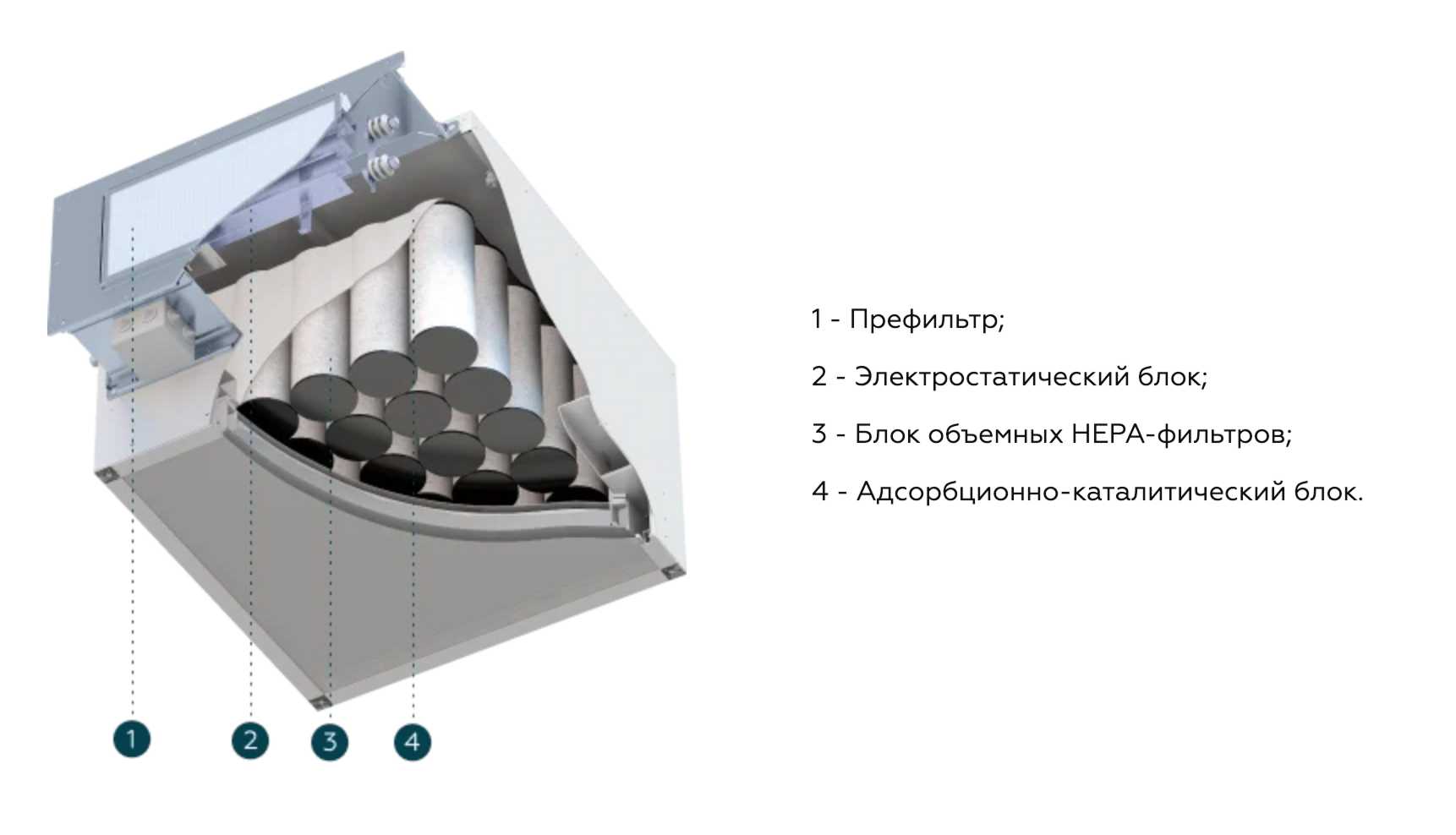 Одновременно отфильтровывает частицы, инактивирует (уничтожает) все типы микроорганизмов с эффективностью не менее 99%, очищает воздух от запахов и вредных газов.
