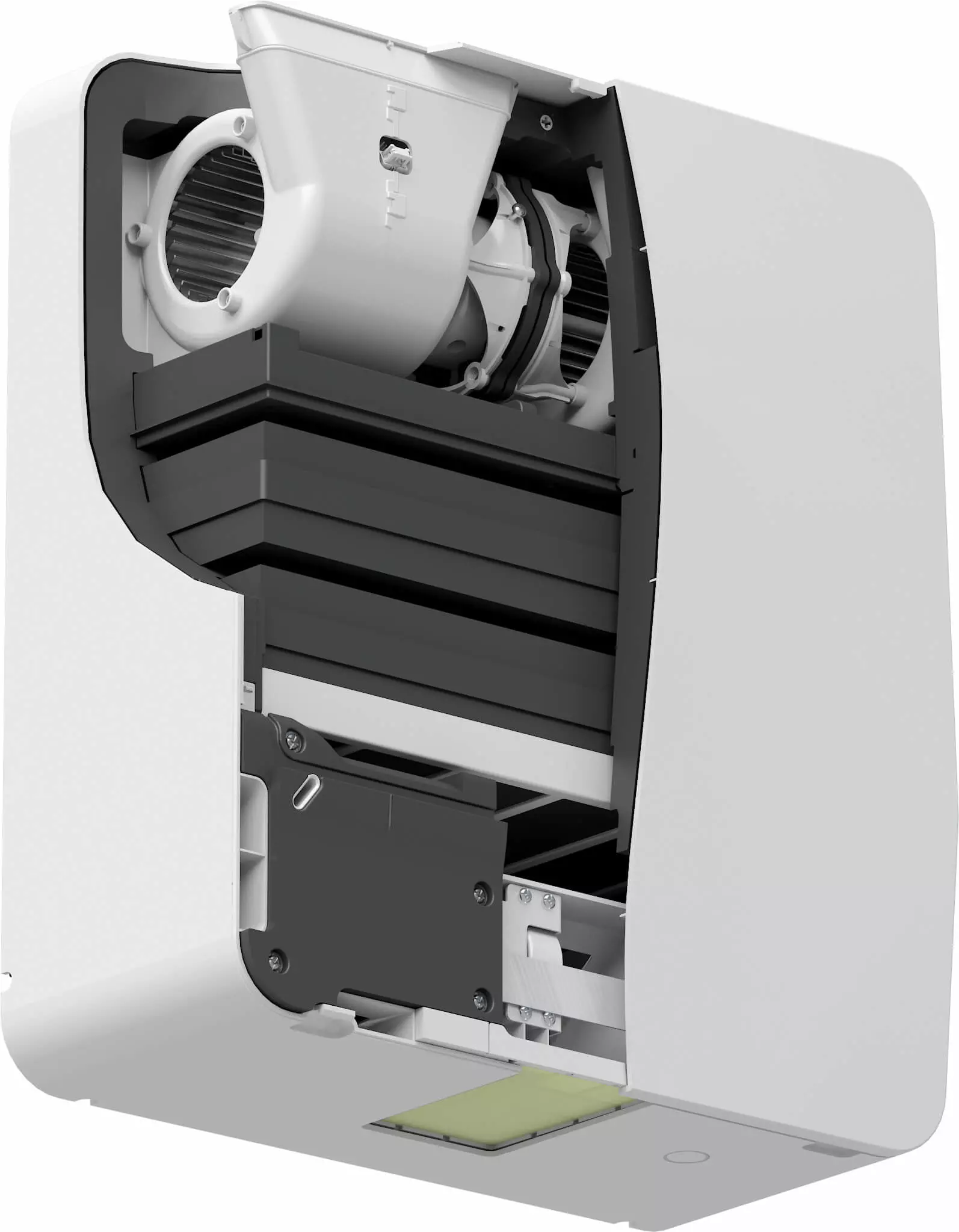 Компактное устройство приточной вентиляции для проветривания помещений при закрытых окнах.